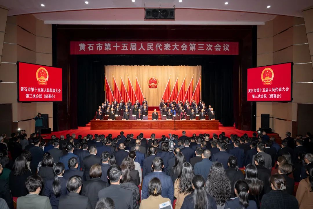 1月18日下午,黄石市十五届人大三次会议圆满完成各项议程,在磁湖剧院闭幕。