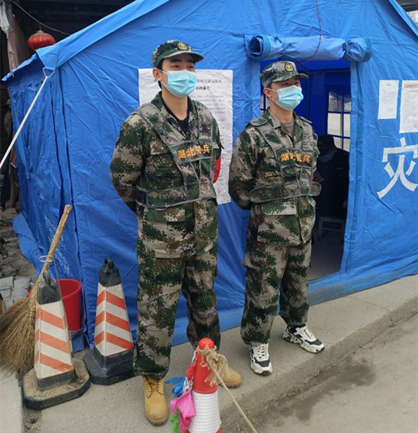 经过了解发现,原来两人颇有“缘分”,成长经历和名字一样,十分相似——目前都是在校大学生,都是退役军人,且都是金海“子弟兵”。此刻,他们都积极响应人武部号召,参与到金海民兵与公安干警联合组建的纠察队中,助力防疫一线。