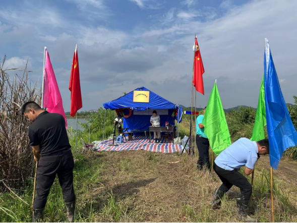 一名党员就是一面旗帜,一顶帐篷就是一座堡垒。在防汛抢险的战场上,一个又一个党员干部的身影站了出来,他们用自身行动诠释责任与担当,让一面面党旗在一线高高飘扬。