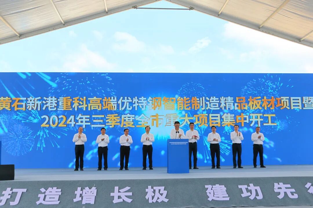 2024年三季度全省重大项目集中开工活动举行,黄石分会场再一次设立在新港园区,黄石新港重科高端优特钢智能制造精品板材项目盛大开工。