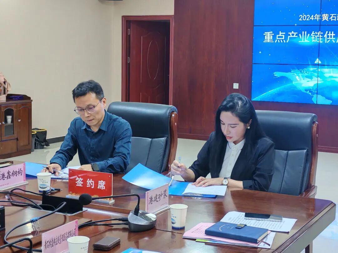 洪鑫炜晔产业园区运营管理有限公司与供应方湖北港建新型建材有限公司签订了意向性合作协议。与会的14家产业链、供应链企业从主打产品及采购需求方面,围绕供应链合作在会上进行了深入交流。