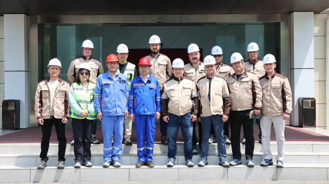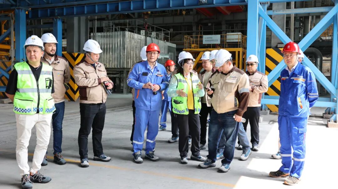 在进入生产区前,Baigabelov Zhanibek一行严格遵守弘盛铜业安全规定要求,接受了入场安全教育,随后来到智慧中心,听取了从原料到成品产出的全流程生产线。在智慧中心中控大厅内,闪烁的屏幕实时跳动着生产数据,全流程自动化作业的场景让Baigabelov Zhanibek一行驻足良久。当听到该公司自主研发装备了15台套智能装备系统,其中12台套为行业内首创时,Baigabelov Zhanibek频频点头:“你们将数字技术与传统冶炼深度融合,让传统的铜冶炼行业焕发了新的生命力,这正是全球铜产业转型升级的典范!” 随后,Baigabelov Zhanibek一行前往研发中心、火冶片区、电解片区等生产区域,实地察看了弘盛铜业智能取制样分析化验系统、智能铜库系统、阳极智能转运及仓储系统的实际应用情况。