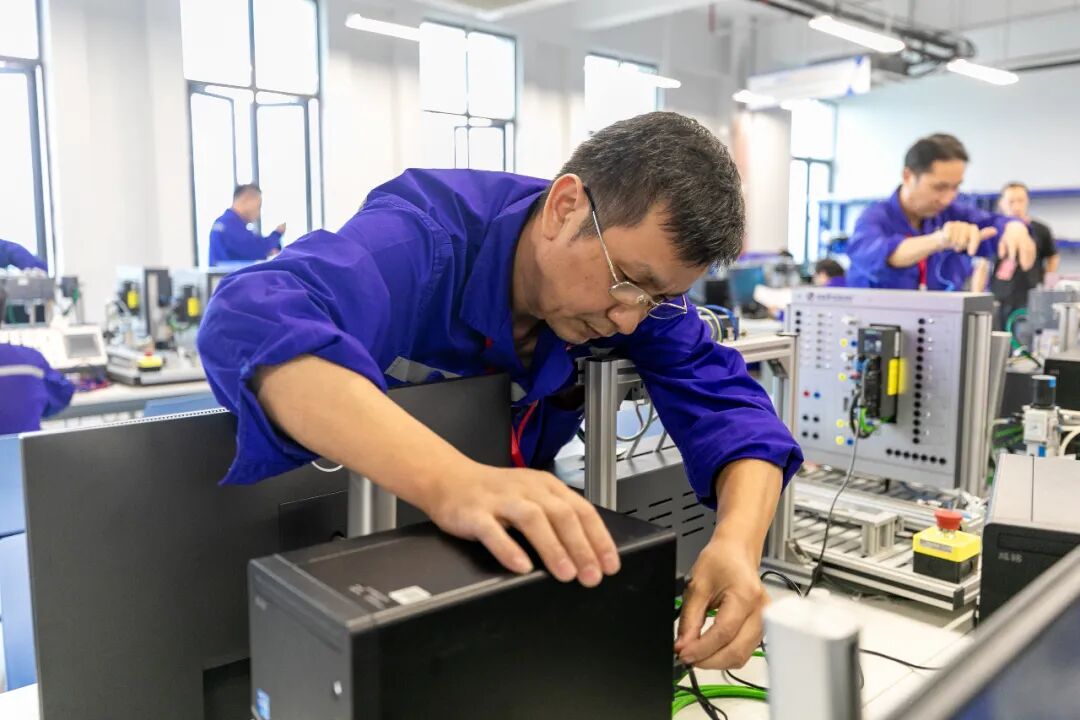 本次竞赛分为理论考试和实操两部分。理论考试涵盖电工电子技术、电机与电气控制技术、变频器技术和PLC应用技术等内容。采用闭卷笔答方式进行;实操考试涵盖依据给定图纸完成电气控制线路的连接、PLC程序设计与调试、V90伺服驱动器参数设定等内容,在两小时内完成。