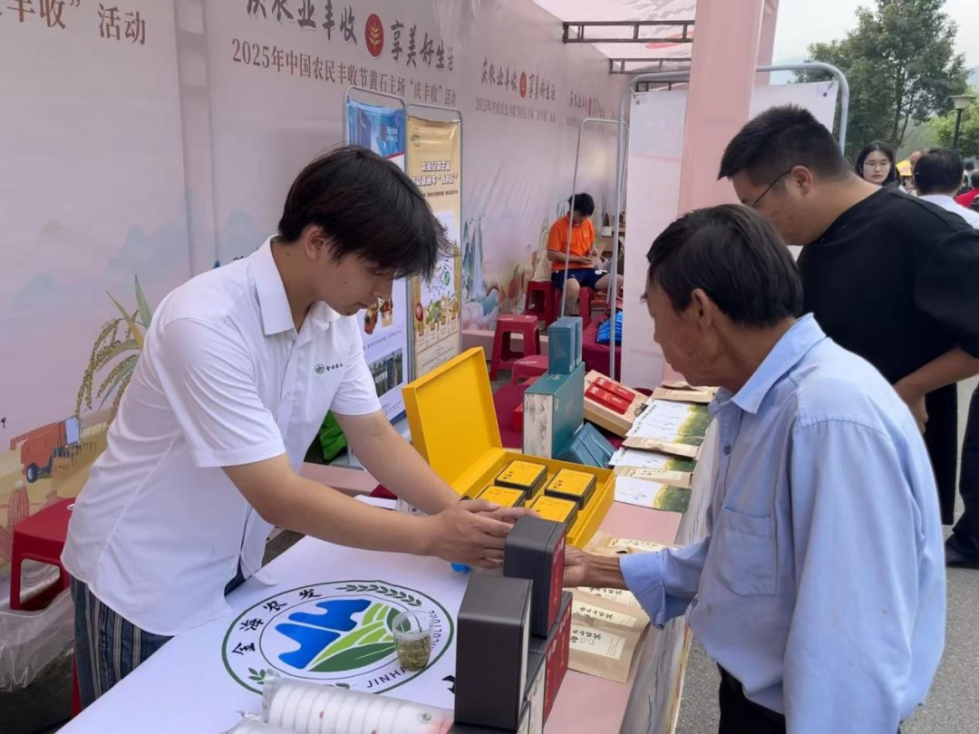 在活动“品丰收”核心板块的“请你喝杯黄石茶”特色环节中,金海农发展位前始终茶香袅袅,沁人心脾,成为现场一道引人驻足的风景线。工作人员身着整洁工装,一边娴熟地冲泡茶叶,一边热情细致地向市民介绍金海女儿山白茶、红茶与黄金芽等核心产品 —— 从茶叶生长的原生态山地环境,到采摘、杀青、揉捻等传统与现代结合的制作工艺,每一个环节都讲解得详实生动。