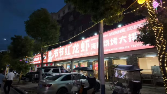 2015年街区建成开街,港城国资公司(以下简称国资公司)自2025年初启动夜市改造工程,围绕“烟火气+夜经济+社区型服务”定位进行整体规划与施工。街区呈直线形分布,商业经营面积约6000平方米,主街长度达200米。项目配套设施完善,统一设置了各功能节点,并配备非机动车停放区、机动车车位82个。目前,棠梨湖夜市共引入商户40余家,街区客群结构以社区居民、周边企业职工为主,消费类型以夜间餐饮和便民服务为主,街区实行延时经营机制,夏季闭市时间为夜间12点,冬季闭市时间为夜间10点。