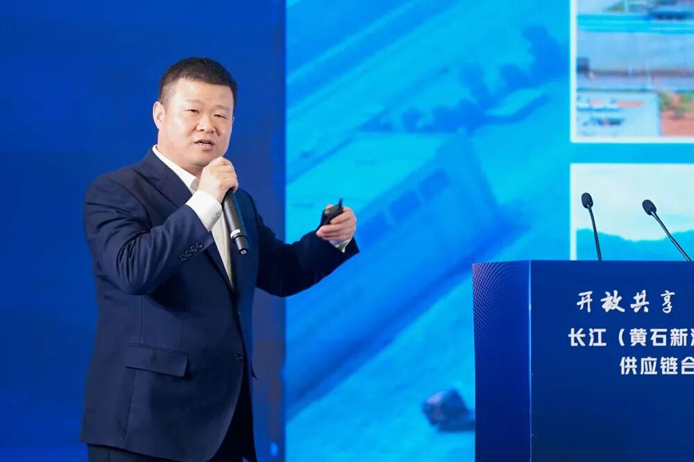 黄石新港港口公司总经理曹文国作港口供应链合作招商推介