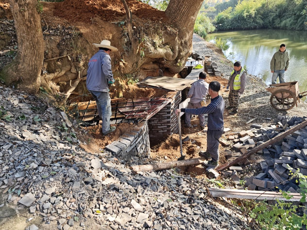 11月28日,在柏林村蚂蚓塘古树复壮现场,4名身着制服的林业技术人员正专注为一株407年树龄的樟树开展救治作业。这株古樟因受白蚁啃食、土壤板结、营养匮乏等问题影响,左上侧枝部分枯死,不仅长势衰败,更存在枝干坠落的安全隐患。为实现科学复壮,技术人员先为古树开展全面“体检”,精准研判生长短板,随后量身定制“一树一策”复壮方案:破除根部水泥地台,对根系进行杀菌消毒,同步实施施肥、浇灌生根剂等措施,改善根系生长环境;对树冠进行精细化整理,清理枯枝病干,消除安全隐患的同时减少养分消耗;针对树体养分不足问题,配置专用营养液,通过“吊针输液”的方式缓慢注入树体,为古树“补能续命”。专业细致的救治场景,让现场围观群众倍感欣喜,也让大家对古树重焕生机充满期待。