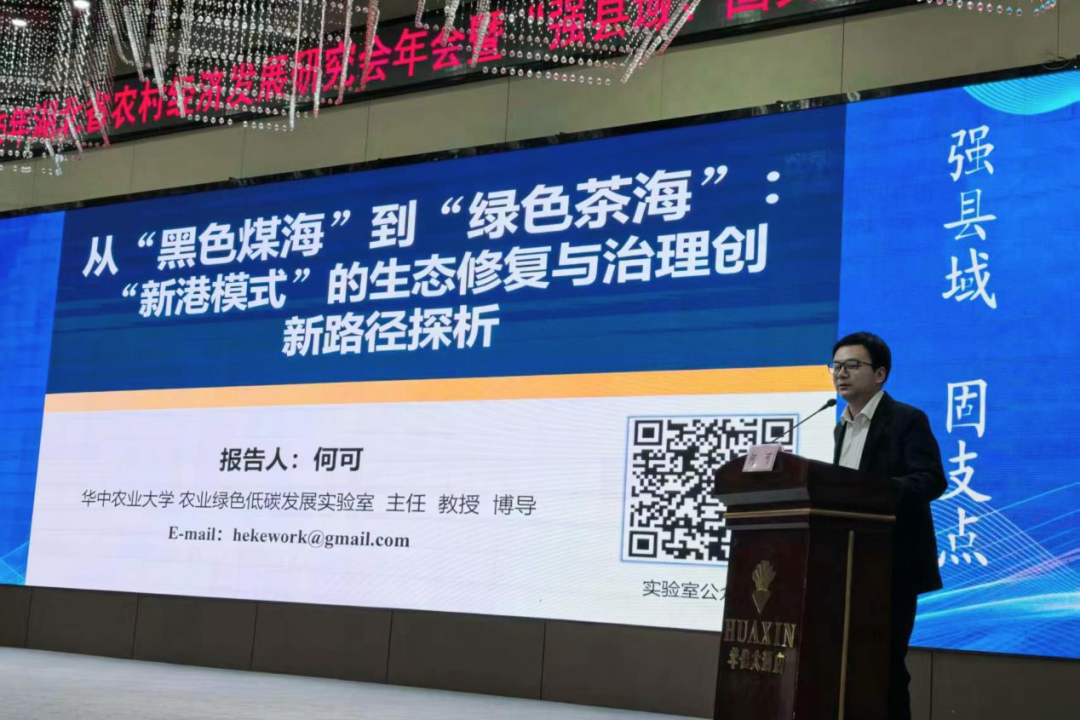 11 月 8 日,在 2025 年湖北省农村经济发展研究会年会暨“强县域、固支点”创新论坛上,何可以《从“黑色煤海”到“绿色茶海”:“新港模式”的生态修复与治理创新路径探析》为题,回顾金海管理区“因煤而兴、为煤所困”的历程,提出“多元治理共同体+激励相容机制”的转型框架,为资源枯竭县域提供示范。