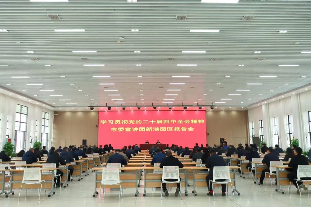 根据市委统一安排部署,今天(12月5日)上午,学习贯彻党的二十届四中全会精神市委宣讲团新港园区报告会举行。市委宣讲团成员、市政府研究室党组书记、主任杨永旺同志作专题辅导。新港园区党工委书记、管委会主任程艳民主持报告会。