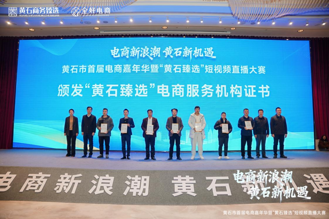 12月16日,黄石市首届电商嘉年华暨“黄石臻选”短视频直播大赛启幕。黄石市金海农业产业发展有限公司凭借规范运营实力与专业电商服务能力,成功入选首批“黄石臻选”电商服务机构库并获颁证书,成为新港园区国企助力电商生态建设的重要标杆。