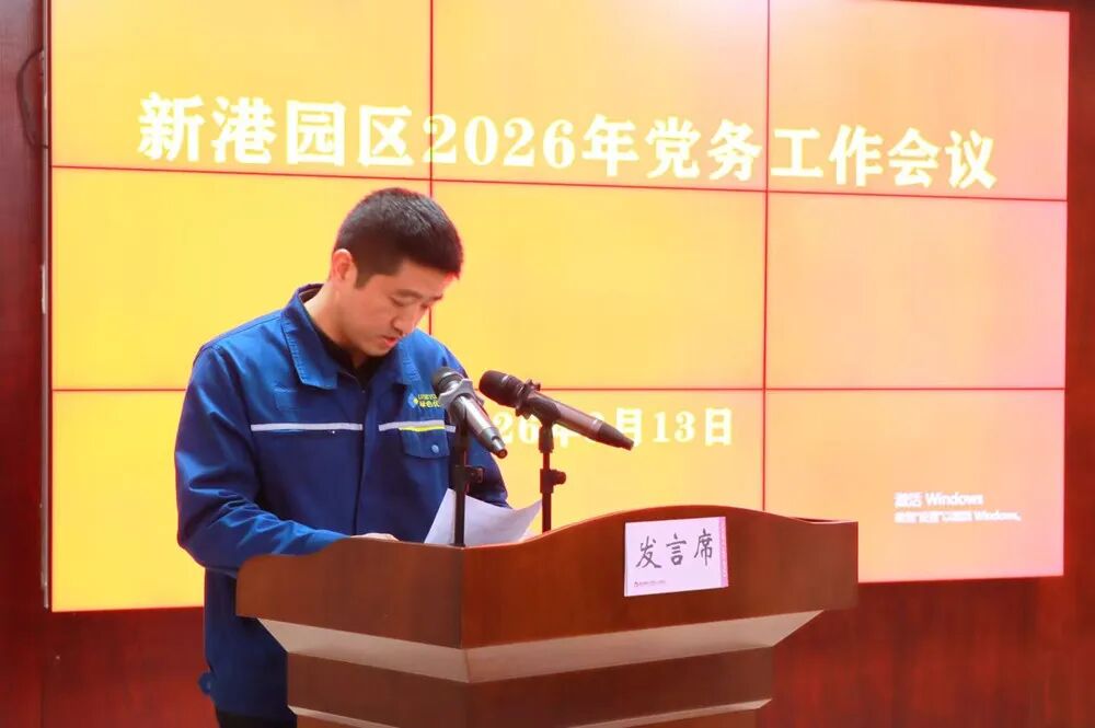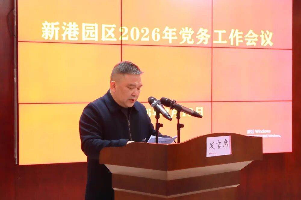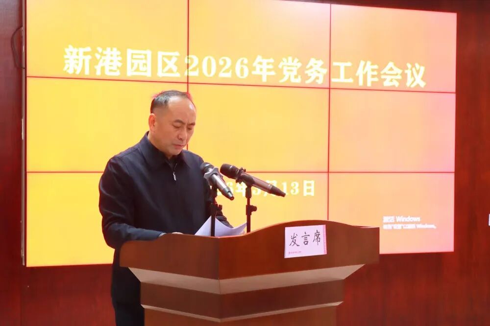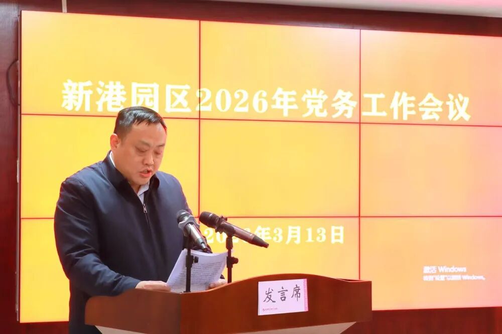 3月13日上午,新港园区2026年党务工作会议召开。会议深入学习贯彻习近平新时代中国特色社会主义思想和党的二十届历次全会精神,全面落实全国、全省、全市组织、宣传、统战、社工部长会议部署要求,总结2025年党务工作成效,分析当前形势任务,部署2026年重点工作,为园区“十五五”开好局、加快建成“五港”筑牢政治根基。园区党工委书记、管委会主任程艳民参加会议并讲话,园区党工委副书记、管委会副主任梅浩主持会议。