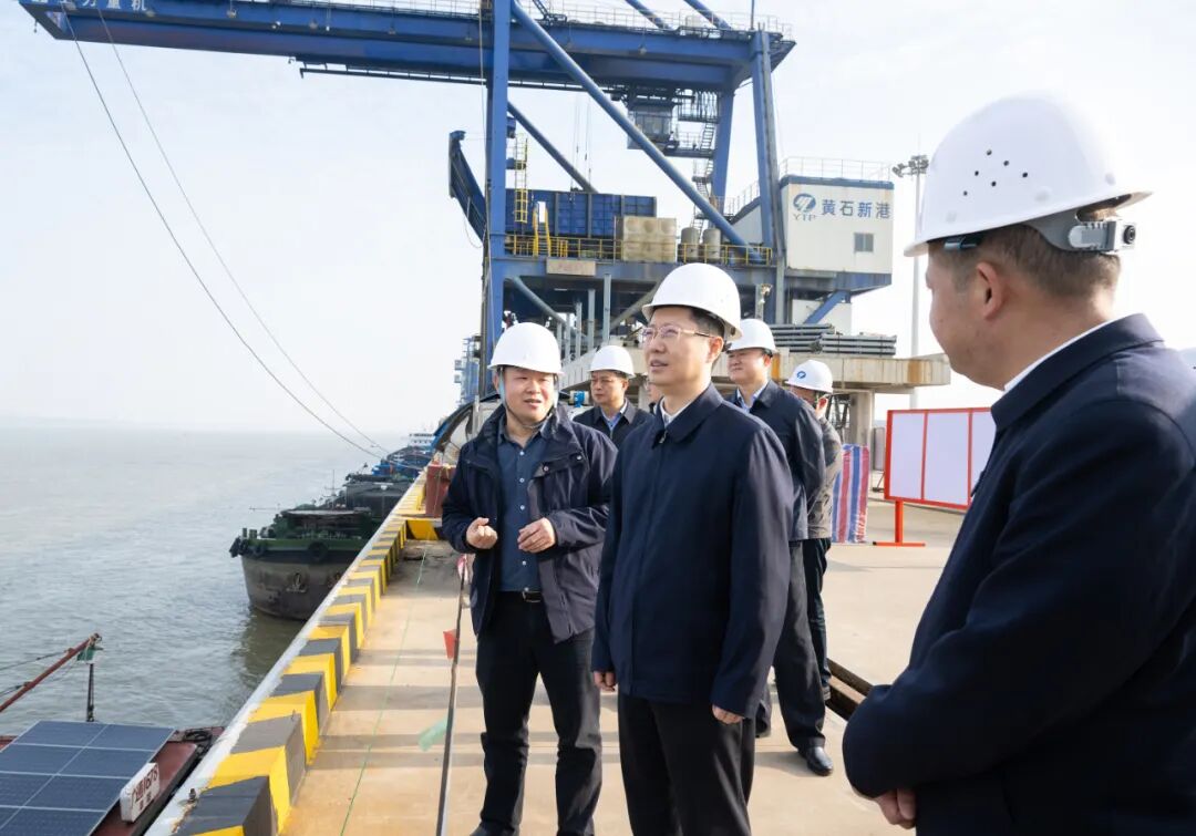 调研黄石新港首台套链斗式卸船机和埋刮板卸船机项目建设情况