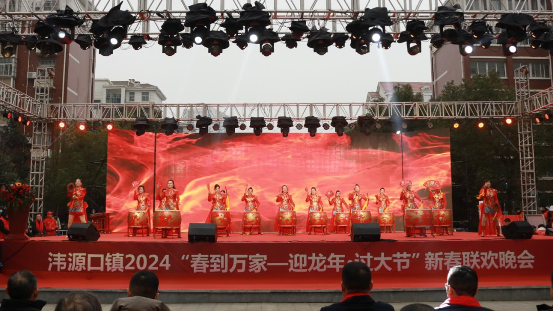 联欢会在气势磅礴的威风锣鼓《鼓舞人心》中拉开序幕,韦源口镇党委副书记、镇长赵前锋作了热情洋溢的新春贺辞,代表镇党委、政府向前来观看的领导、全体党员干部、群众致以诚挚的新年祝福。歌舞小品、诗歌朗诵等16个节目轮番上演,现场观众欢声笑语、掌声连连。前来观看的柯大妈高兴地说:“前几日的雨雪天有些冲淡了这年味,今天好不容易天气放晴,大家都出来热闹热闹,看着身边的邻居们由台下走到台上,从观众变成演员,让我们感到非常亲切,非常接地气,今天的表演大家看得非常过瘾!”