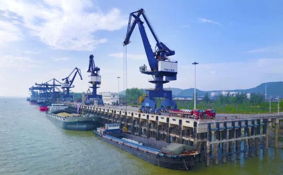 在去年取得“投产即达产、达产即盈利”的精彩开局后,今年以来,弘盛铜业继续保持良好向上发展态势,1—6月实现主产品产量阴极铜16.93万吨、硫酸68.64万吨,工业总产值达146.8亿元,同比增长30.17%,在全市重点工业企业中持续领跑。 以弘盛铜业为标杆,新港园区不断突出创新引领、科技赋能,加快发展新质生产力,扎实推进园区高质量发展。2023年,宝钢股份黄石涂镀板有限公司获评“国家绿色工厂”,华新水泥(阳新)有限公司“通用硅酸盐水泥P042.5、P052.5”获评“国家级绿色设计产品”,金呈装备制造被认定为高新技术企业,金呈装备制造、丰源钙业科技、秦河新材料三家企业成功申报为科技型中小企业及科技型创新企业。 今年以来,新港园区坚持以科技创新引领现代化产业体系建设,全面提升创新能力和水平。强化科技型中小企业、创新型中小企业、高新技术企业、专精特新企业梯队培育,加快推进海口湖科创岛、创新创业服务中心建设,激发企业创新动能,打造科创企业集群。黄石新港码头吊运货物