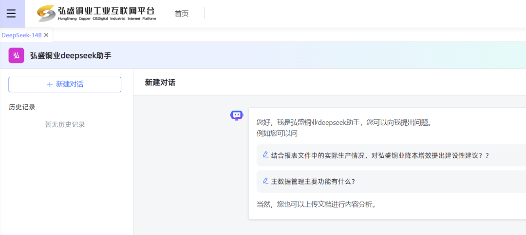 目前,技术团队已完成包括生产报表台账、工艺指标参数、生产操作规程、设备操作规程、设备维护规程、工业互联网平台运维及操作规范等13个知识库的建立。同时,工业互联网平台已完成13.2万个点位的数据采集,累计时序数据量达4.26万亿,以及2万余条关系数据积累,通过将DeepSeek大模型与工业互联网平台进行集成,与数据加工平台进行对接,将经过数据加工平台清洗处理后的数据进行拉取和分析,以促进公司降本提质增效的目的,为后续AI应用奠定了坚实基础。