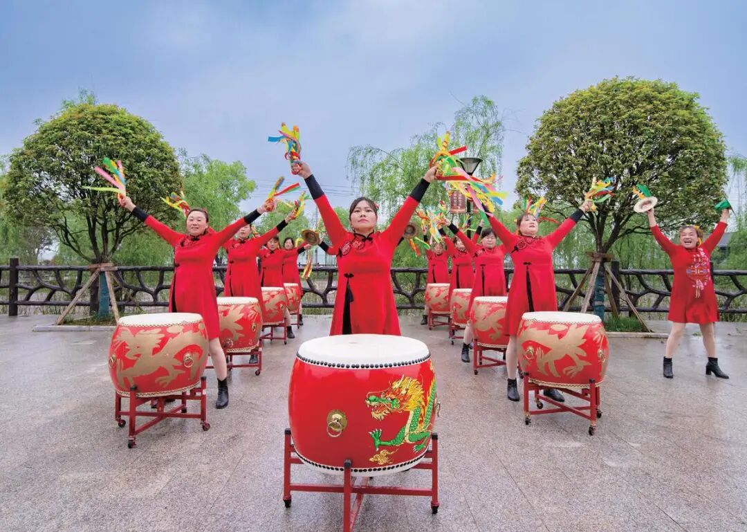 大妈锣鼓队排练节目