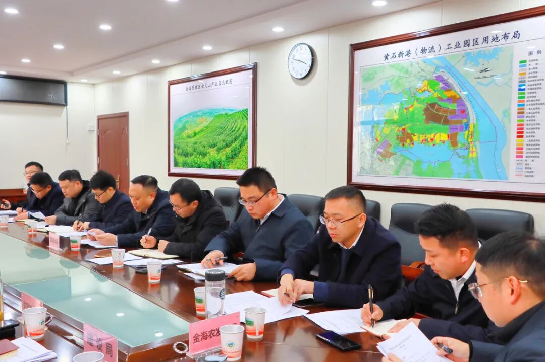 程艳民一行在现场调研金海农业发展公司运营情况以及西山村徐家塆环境整治和清洁家园情况后,在管理区召开座谈会,专题听取金海管理区2024年各项工作完成情况,以及2025年发展谋划工作。