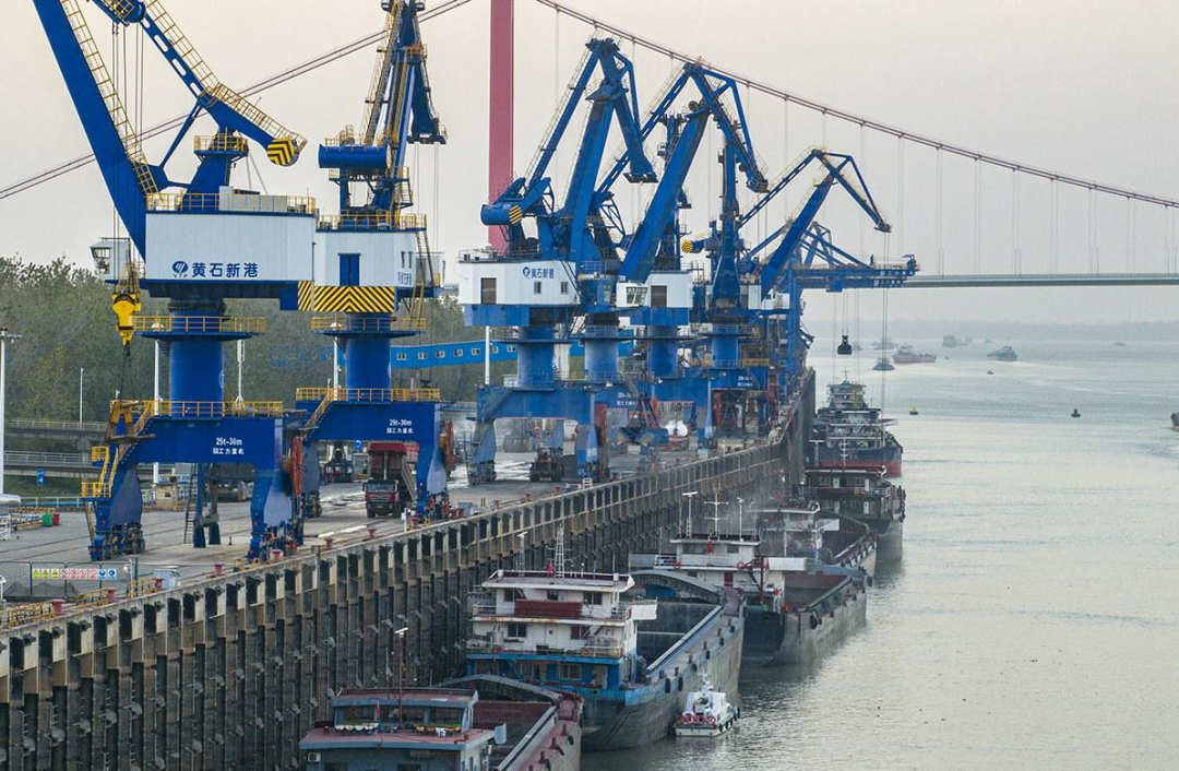 2024年,黄石新港以近1.04亿吨货物吞吐量创历史新高,正式跻身中国内河亿吨大港行列。