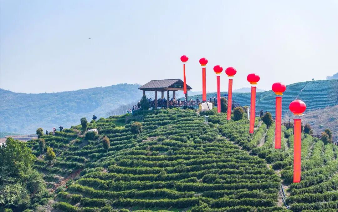 游客观赏茶园美景