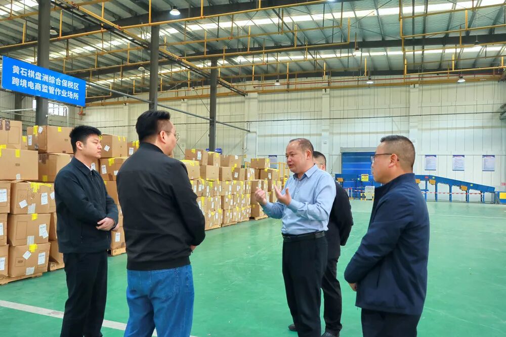 程艳民先后前往综保区跨境电商监管仓库、闻泰科技三星手机出口集拼项目以及大冶特钢出口集拼项目现场了解工作和项目推进情况。