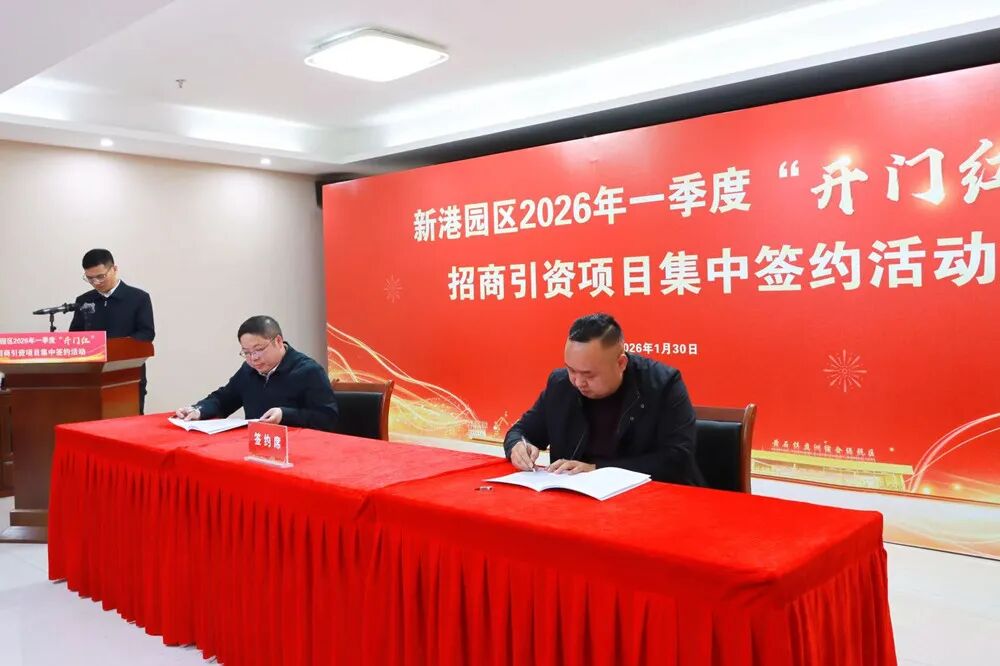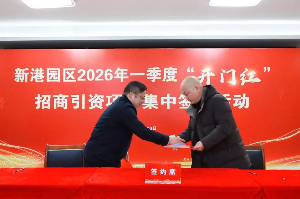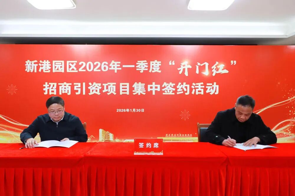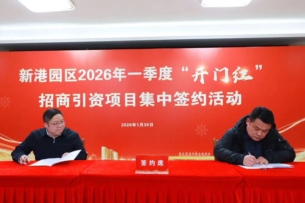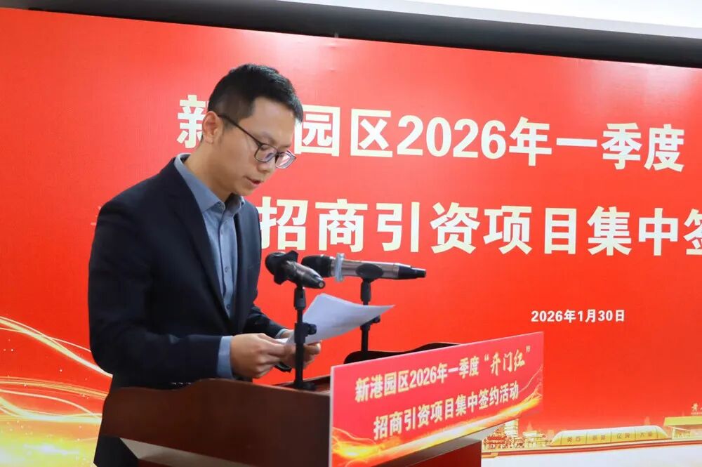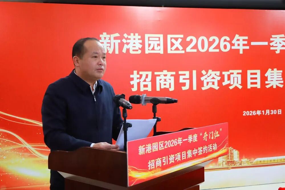 今天(1月30日)下午,新港园区举行2026年一季度“开门红”招商引资项目集中签约活动。总投资额达61.8亿元的13个优质项目成功签约,涵盖智能智造、跨境电商、现代农业等领域,以“开局即冲刺、起步即攻坚”的奋进姿态,为园区全年高质量发展赢得良好开局,为“十五五”规划开局起步注入强劲动能。园区党工委书记、管委会主任程艳民出席签约活动并讲话。园区党工委副书记、管委会副主任梅浩主持活动。签约现场,两位企业代表先后做了发言。荆楚物产有色金属商贸储配基地项目负责人表示,新港园区区位优势突出、物流配套完善,为大宗商品贸易发展搭建优质平台,园区专业高效的政务服务与优良营商环境,坚定了企业投资发展信心;佳达1210跨境电商项目负责人表示,园区口岸功能独特、产业生态持续完善,为跨境电商业态集聚发展提供有力支撑,企业将加快推进项目落地运营,助力园区对外开放能级提升。